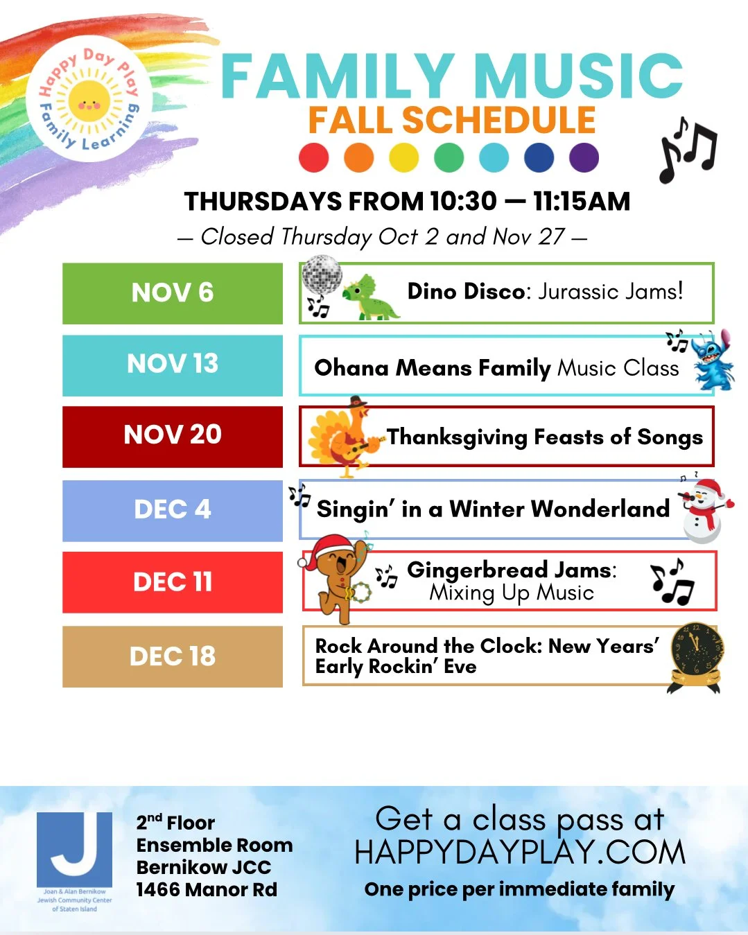 A weekly musical adventure where your whole family connects, moves, and learns together—right here on Staten Island